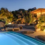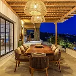 Located about a 10-minute drive from the Little Venice, the 5-bedroom Elements Mykonos Villa Plintri offers a terrace with views of the sea. Featuring bicycle rentals, this Plintri villa invites guests to visit the Archaeological Site of Delos, situated 3.7 km away.